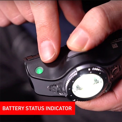 โข battery level indicator glows for 2 seconds when headlamp is turned on